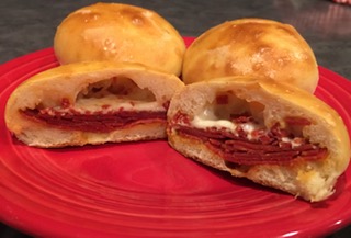 high gluten wheat flour, whole milk, egg, organic sugar, organic butter, Margherita sandwich pepperoni, mozzarella cheese, sea salt, active dry yeast, extra virgin olive oil